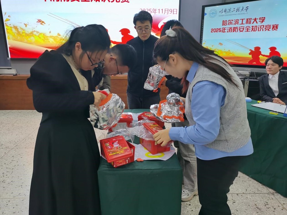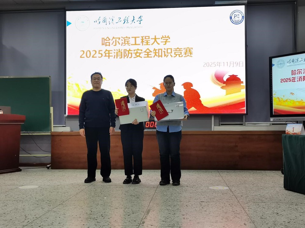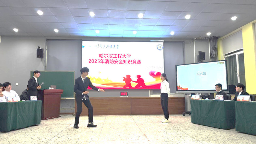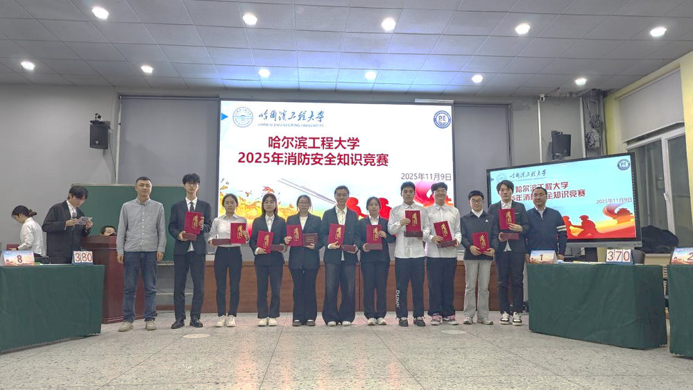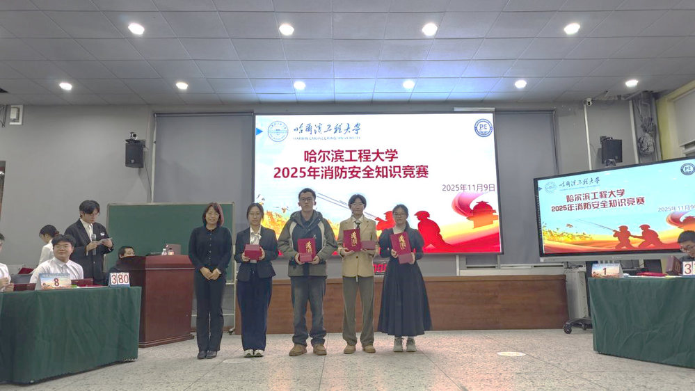 为深入贯彻落实校园消防安全宣传教育,提升广大师生的消防安全意识和应急处置能力,值此全国第34个“119消防日”之际,哈尔滨工程大学2025年消防安全知识竞赛决赛暨颁奖仪式于11月9日在理学楼隆重举行。本次活动由安全保卫处主办,物理与光电工程学院承办,吸引了全校40支队伍踊跃参与,经过初赛激烈角逐,8支优秀队伍脱颖而出,成功晋级决赛。